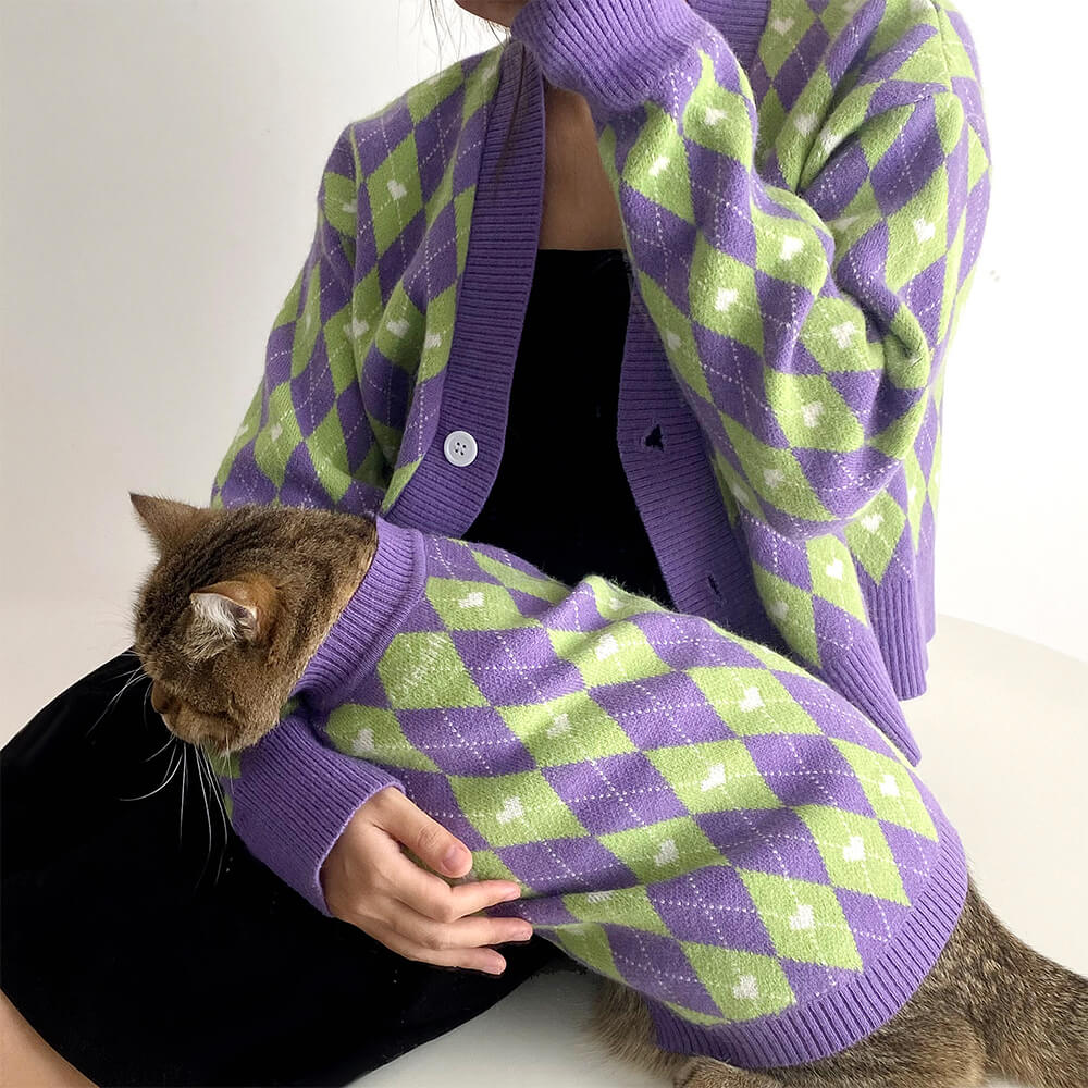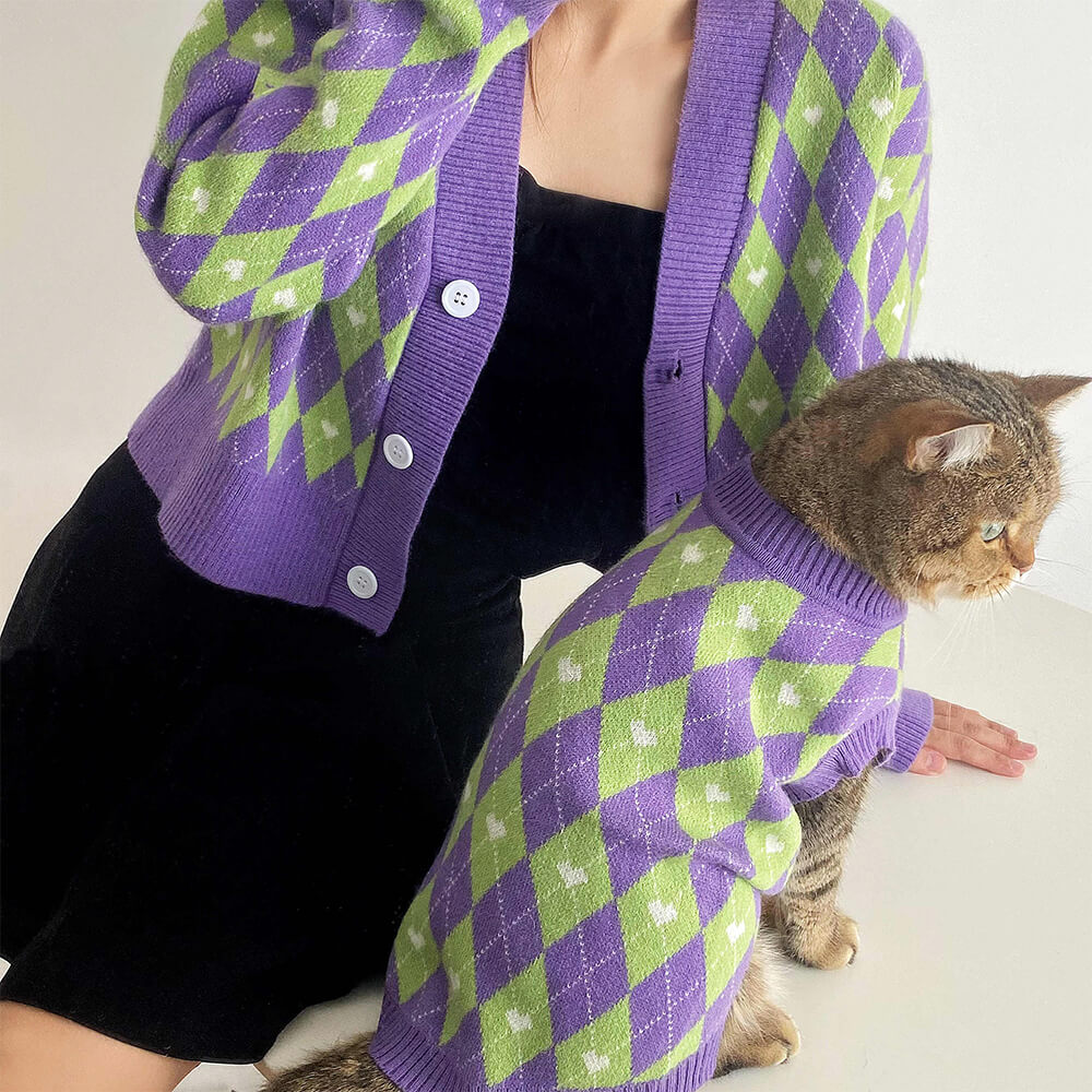 Stay warm and stylish with this soft polar fleece matching sweater set for you and your pet. The classic argyle design and cozy material make it perfect for those chilly walks or lounging together at home.