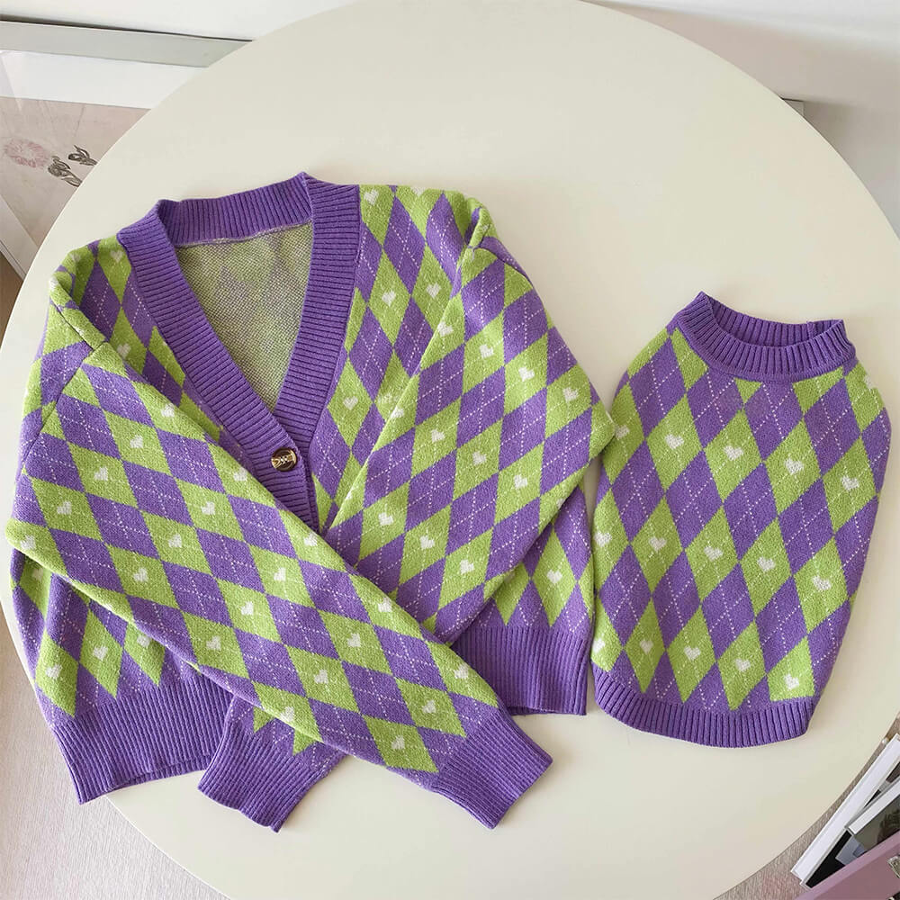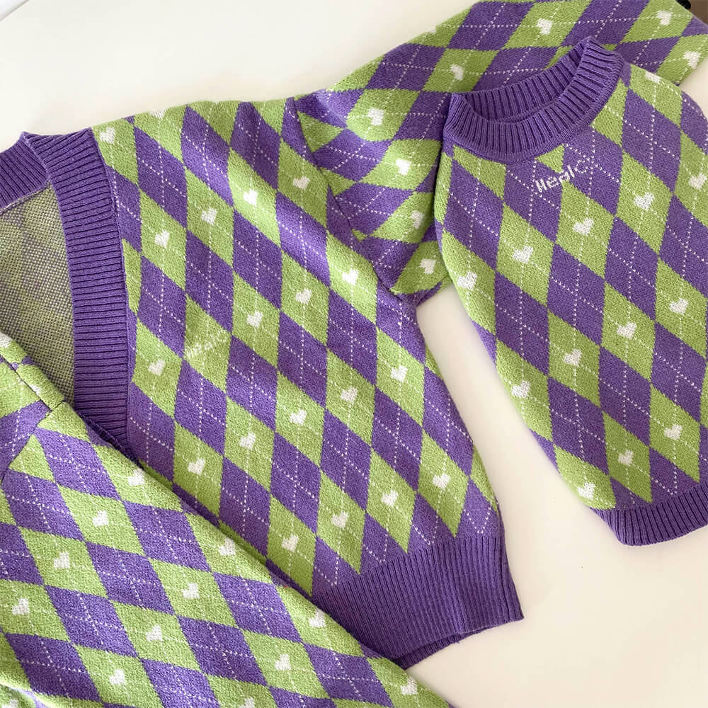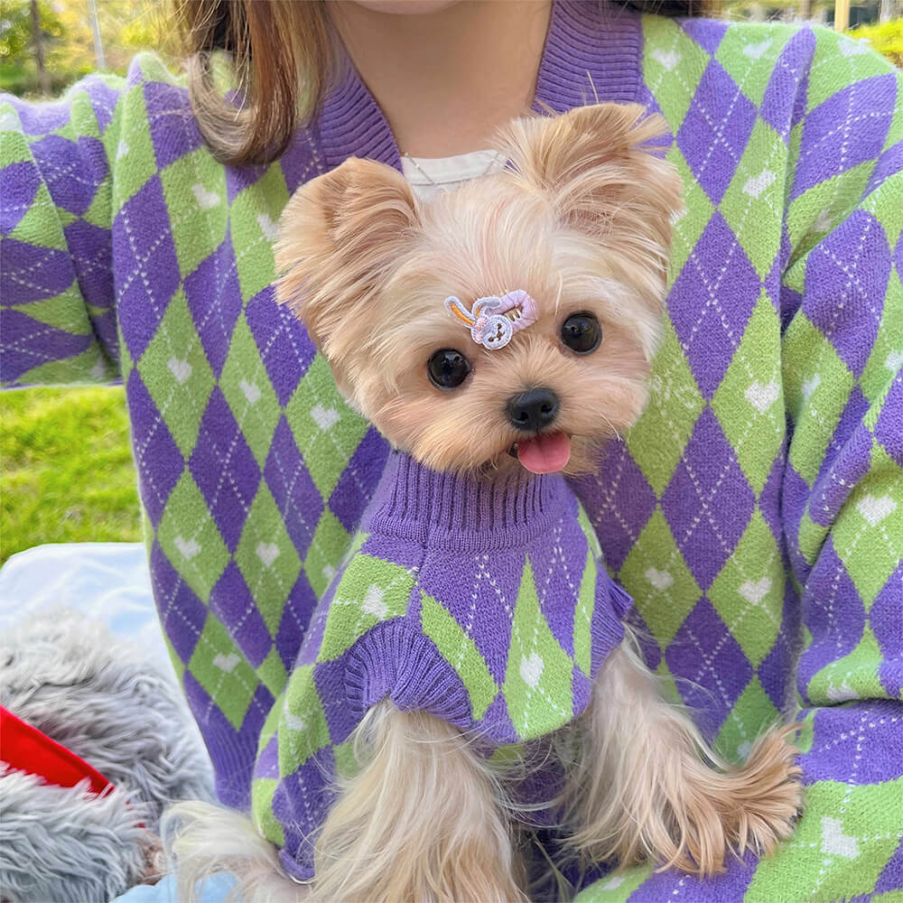 Argyle Heart Dog Knit Sweater Matching Pullover For Dogs And Owner