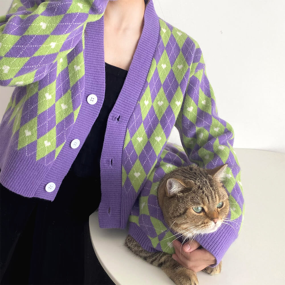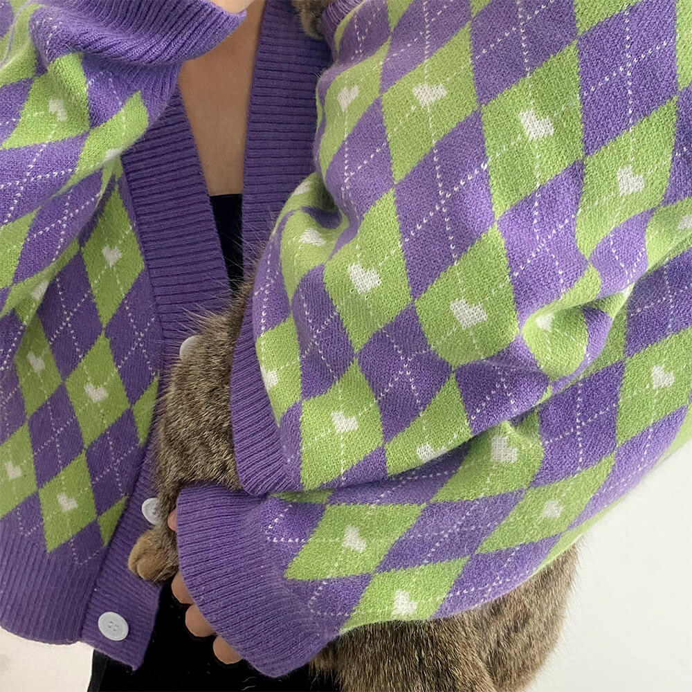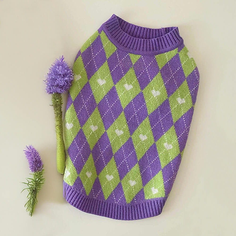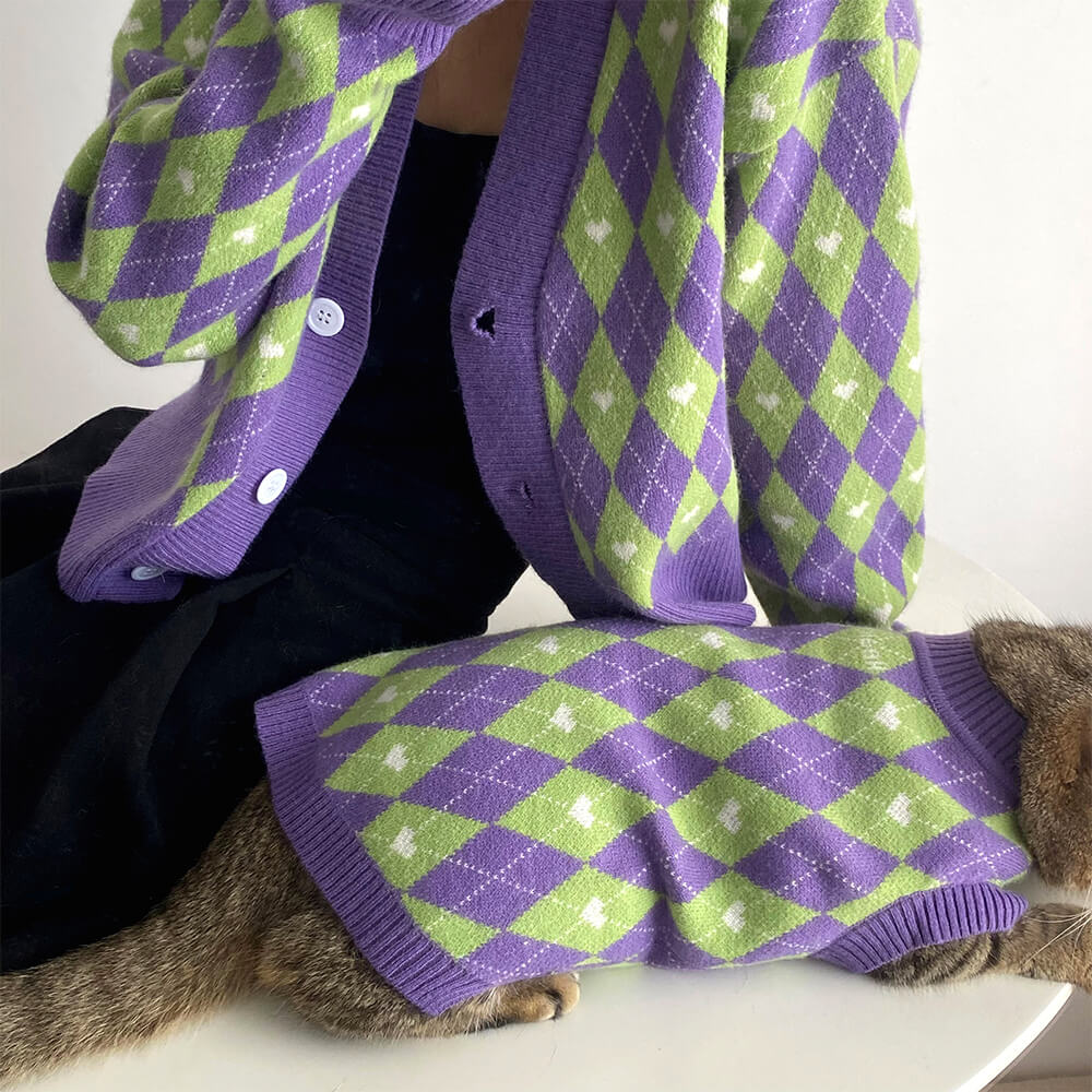 Argyle Heart Dog Knit Sweater Matching Pullover For Dogs And Owner