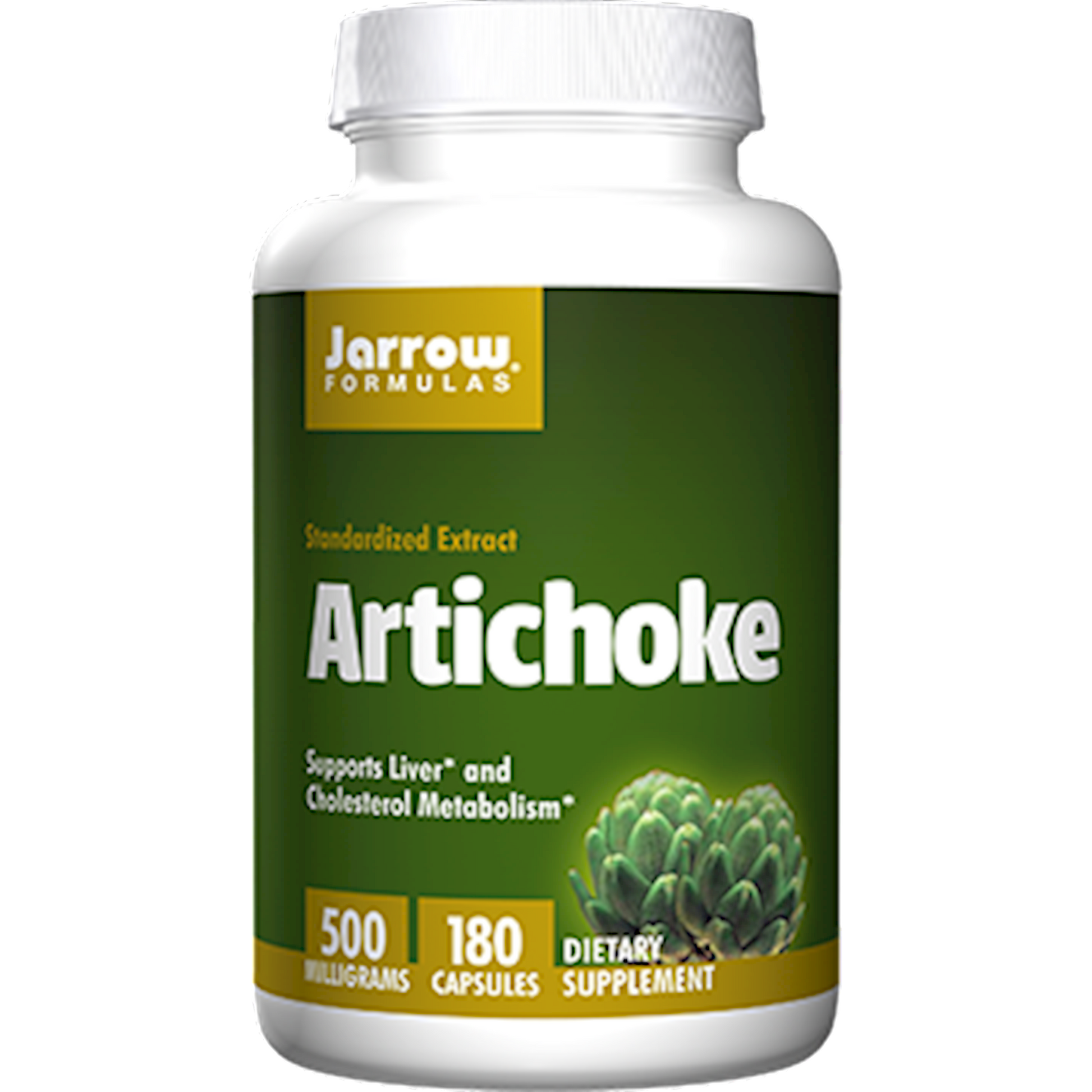 Serving Size: 1 Capsule Servings Per Container: 180 Disclaimer Amount Per Serving Artichoke Extract (Cynara scolymus) * (leaf) (5% total caffeoylquinic acids) 500 mg Other ingredients: Cellulose, magnesium stearate (vegetable source), silicon dioxide, Capsule consists of gelatin
