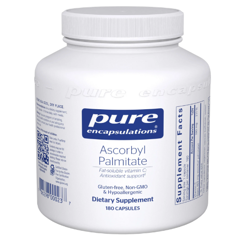 Unlike the water-soluble form of Vitamin C, ascorbyl palmitate, as a fat-soluble vitamin, can be stored in the lipid cell membrane. Vitamin C is anantioxidant and free radical scavenger. It supports immune cell activity. It is essential for the formation and maintenance of collagen. Vitamin C aids in the absorption of iron and the formation of red blood cells. It maintains healthy mast cell function and supports lymphocyte formation for immune health.
