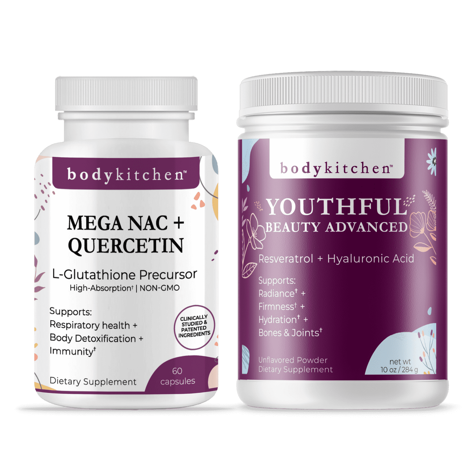 Mega NAC + Quercetin delivers 600mg of each one of these nutrients, making it a highly-effective immune support supplement that promotes healthy respiratory health as well as body detoxification. NAC is known as the ‘master antioxidant’ in the amino-acid family, helping maximize the effects of other free-radical neutralizers such as Resveratrol and Hyaluronic Acid.*